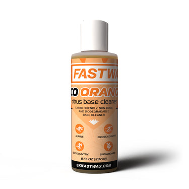 Fast Wax Eco Orange is a friendly ski cleaner. Easy on your ski, easy on your nose. Use to wipe down the ski before, during, or after waxing. No mind-blowing smells here, just clean, citrus cleaning power.